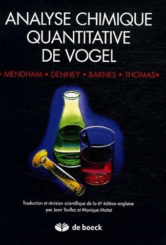Analyse chimique quantitative de Vogel De boeck superieur ~ Analyse chimique quantitative de Vogel écrit par MENDHAM, DENNEY, BARNES,THOMAS, éditeur DE BOECK SUPERIEUR, collection Chimie, , livre neuf année 2006, isbn 9782804147990. Un manuel d'enseignement et de laboratoireCe livre est à la fois un manuel d'enseignement adapté à tous les